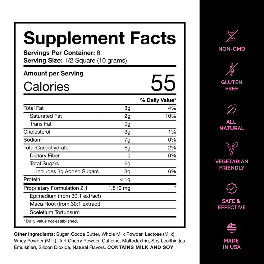 The active ingredients in our aphrodisiac chocolate are designed to enhance sexual arousal for both couples and singles of all genders.